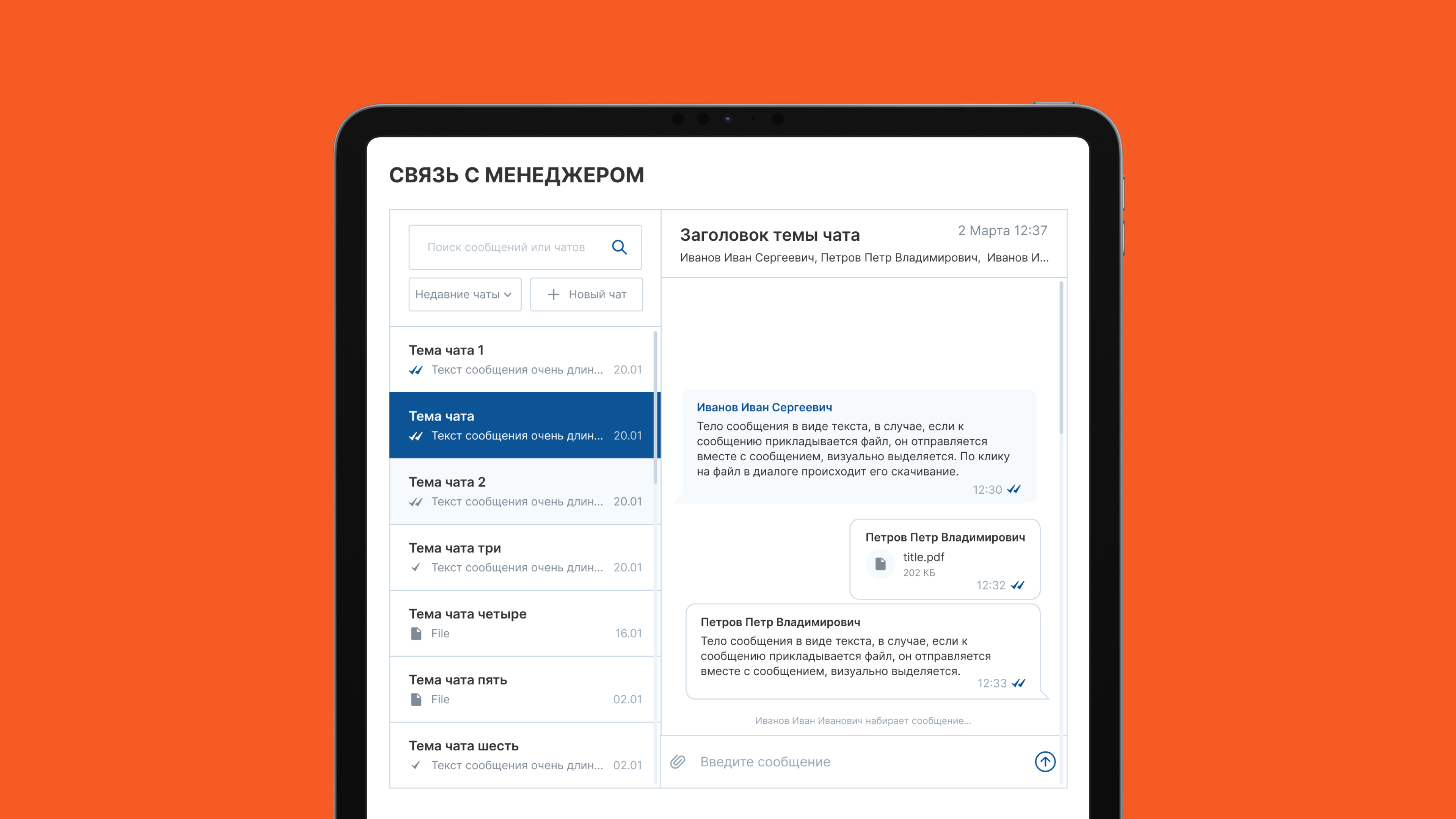 Заказчик хотел завести все каналы общения в единое место, и сделать это современно и удобно. Был выбран вариант реализации реал-тайм чата, но ни одно из готовых решений полностью не подходило. В результате был разработан онлайн-чат с нуля, по аналогии с современными мессенджерами.
