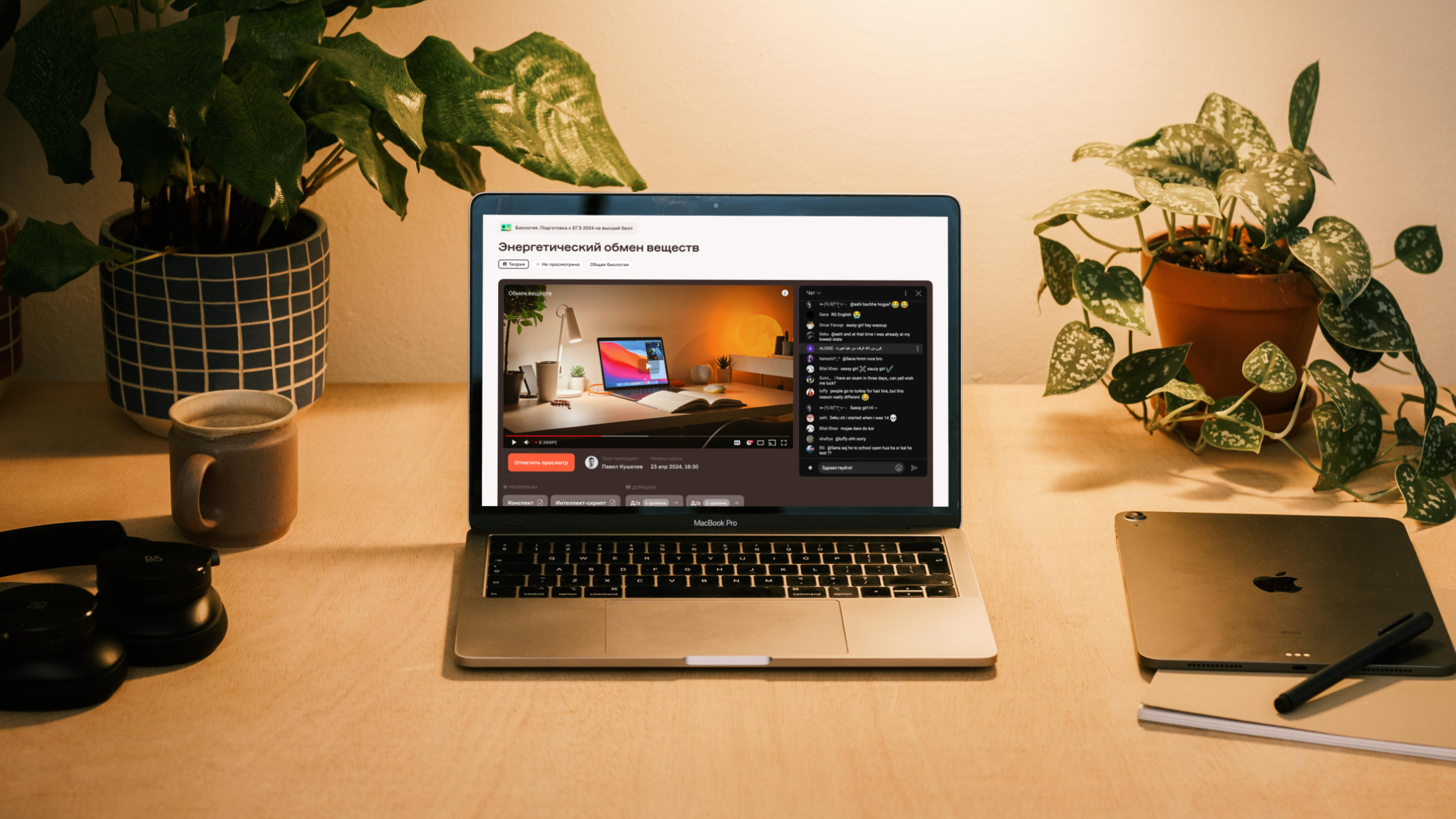Страница урока содержит запись или трансляцию, а также дополнительные материалы для скачивания.
