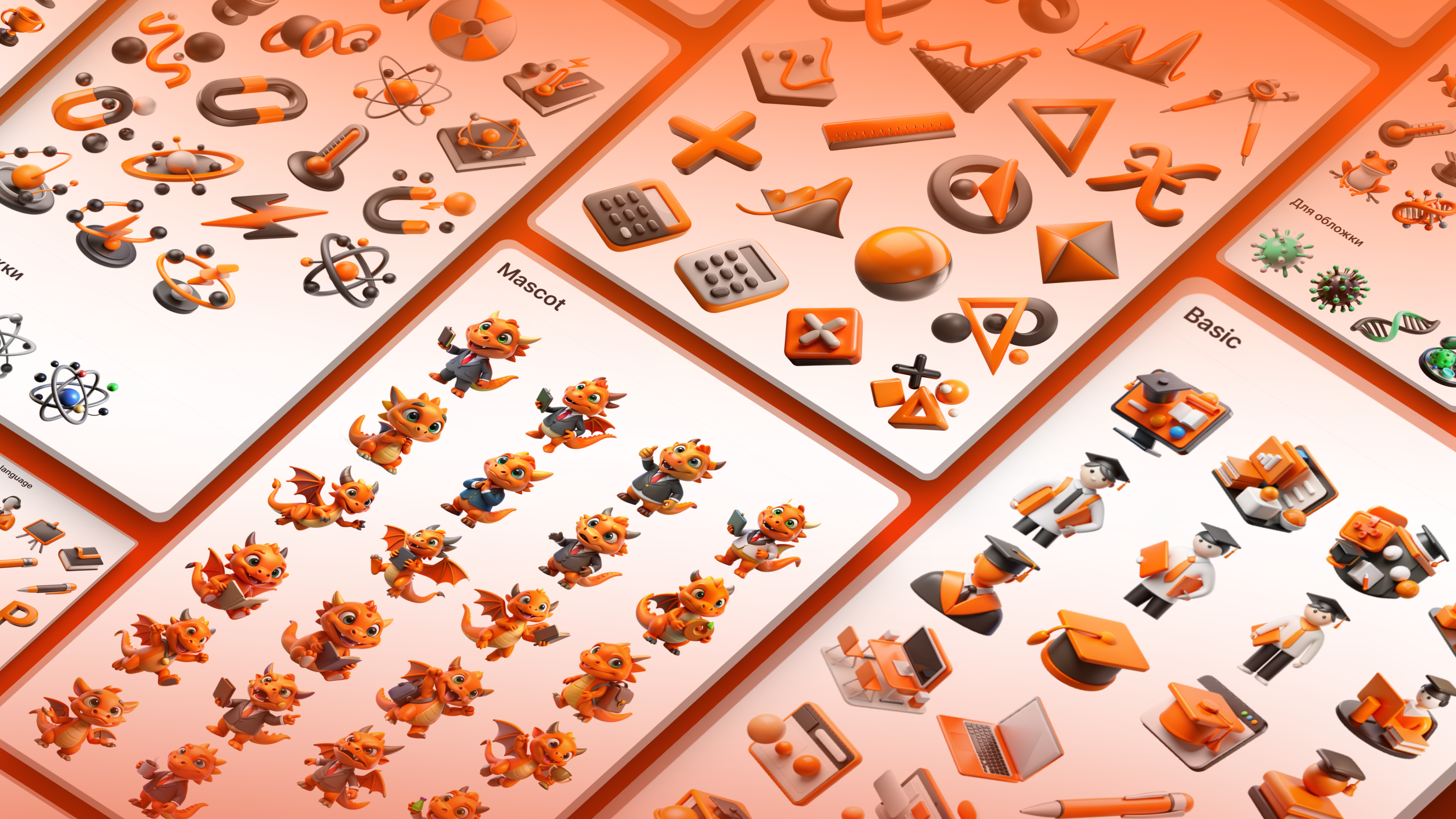 - Создали пакет иллюстраций: с помощью нейросетей разработали набор маскотов с разными образами, предметные иконки и базовые иллюстрации.
