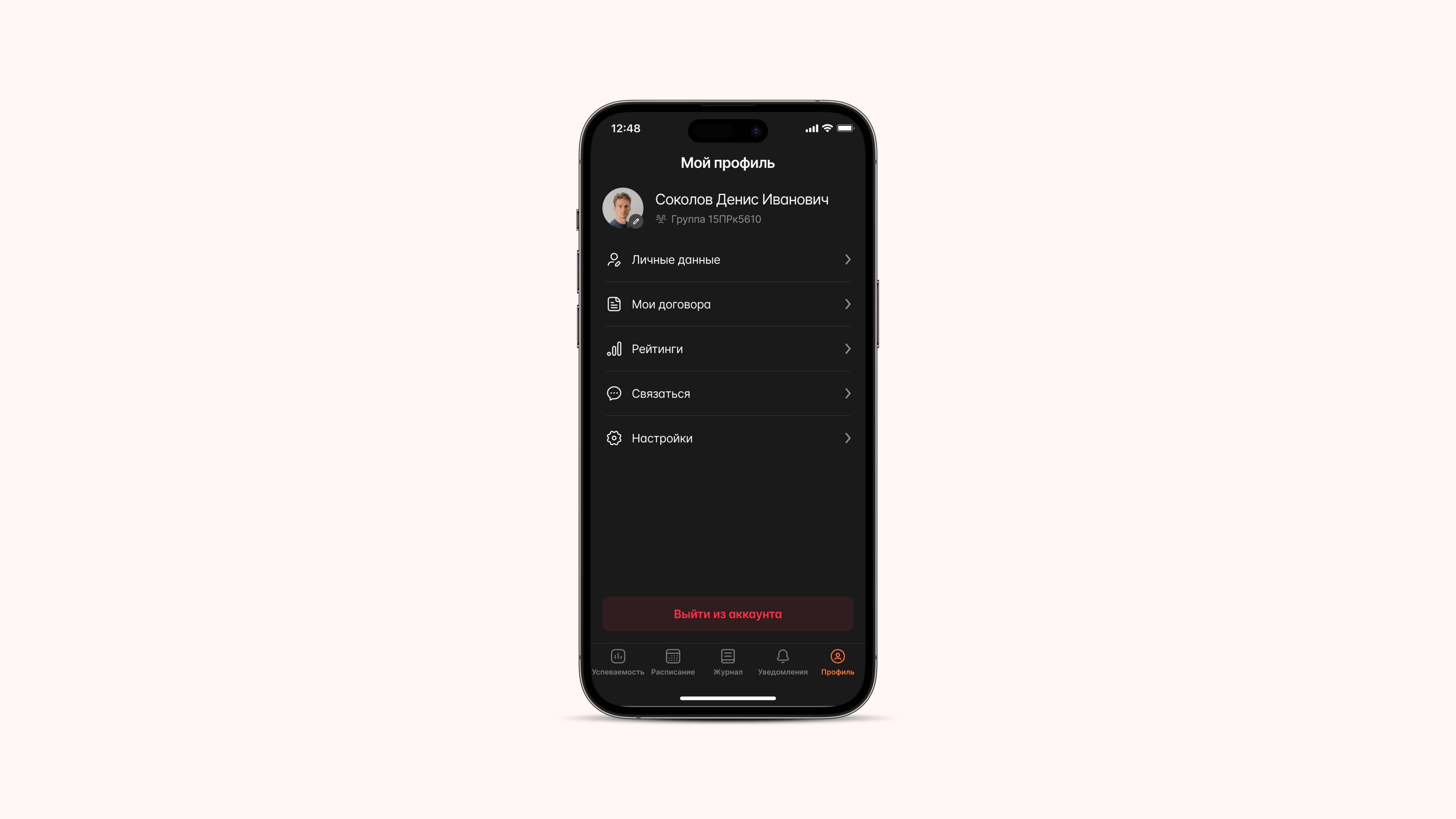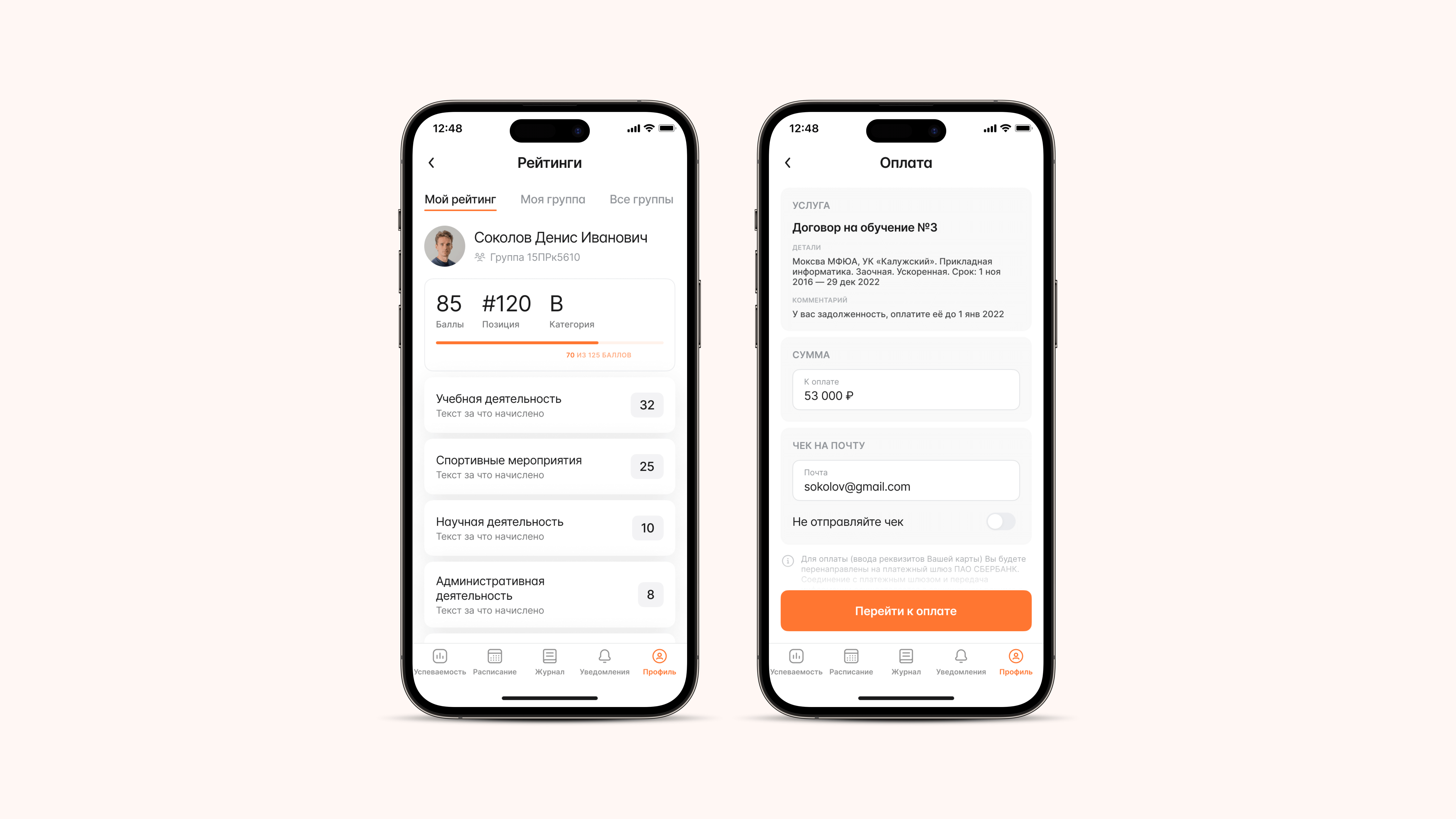 - Профиль: рейтинги студентов и групп, договоры, возможность оплаты и многое другое.