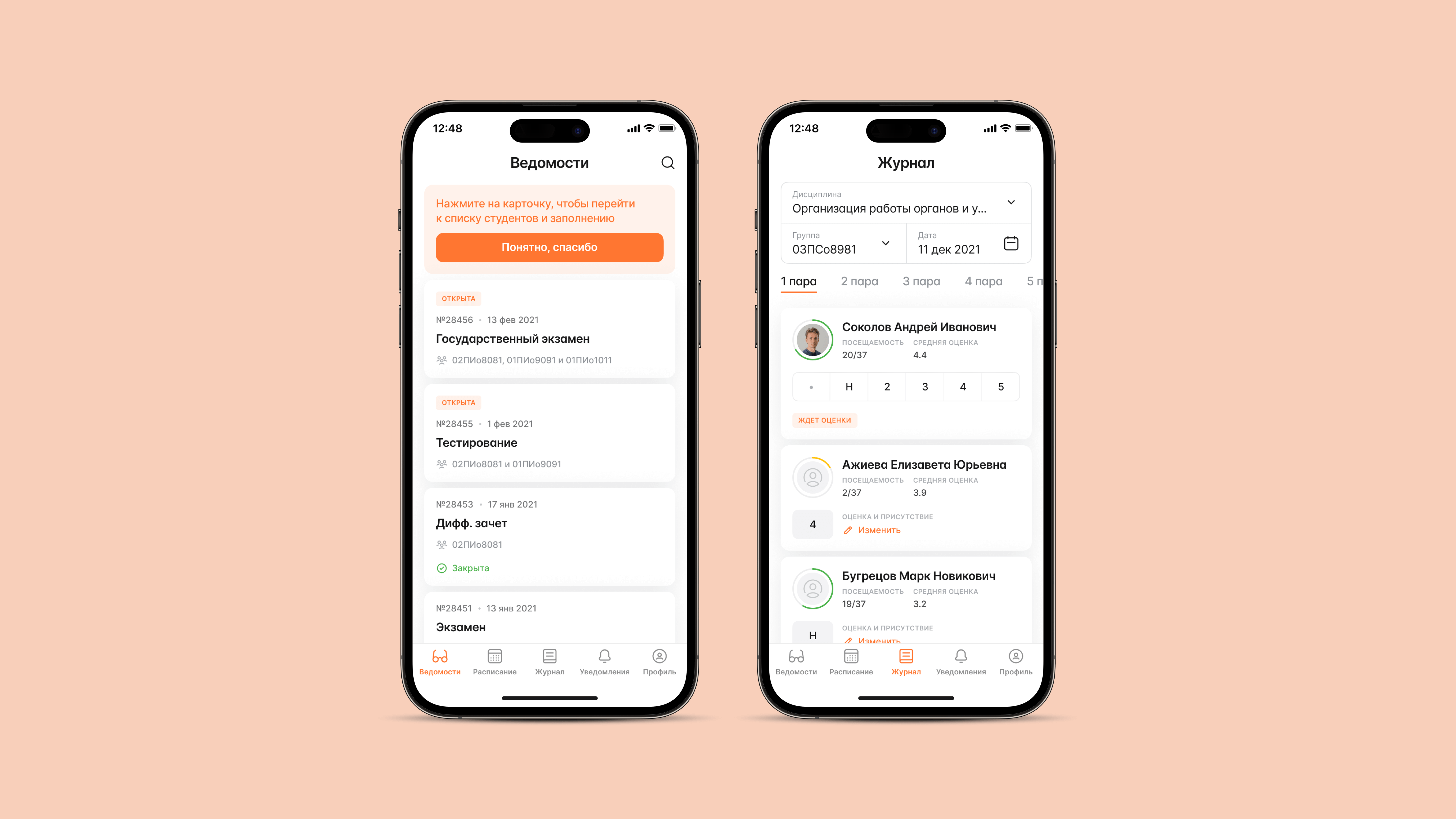 - Электронный журнал: преподаватели могут отмечать присутствие студентов, выставлять оценки за работу на парах