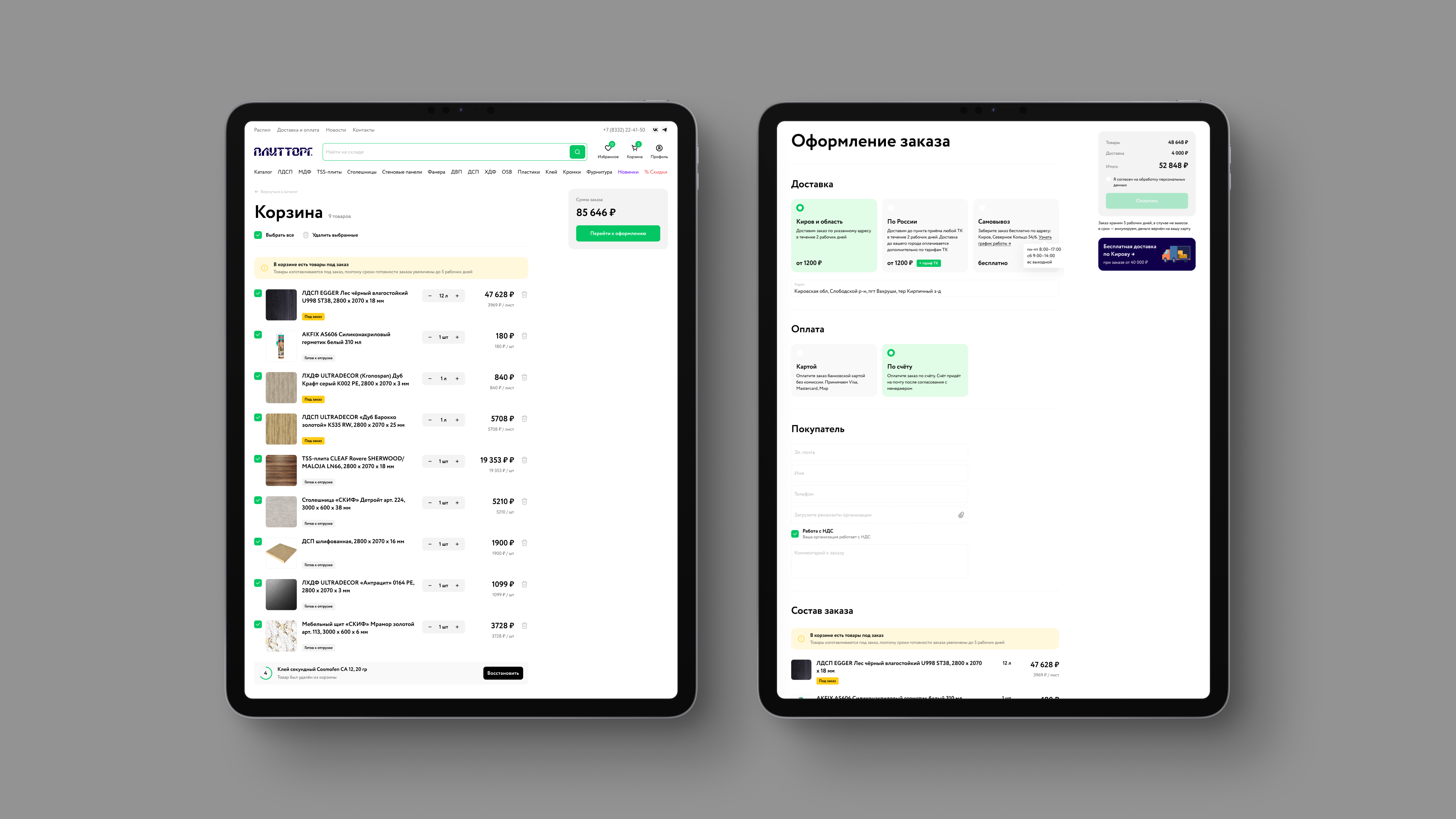 Мы сделали процесс оформления покупки простым, последовательным и визуально лёгким. Корзина получила понятную структуру и чёткие акценты: все ключевые данные о товарах, количестве и стоимости теперь видны сразу, без лишних кликов.