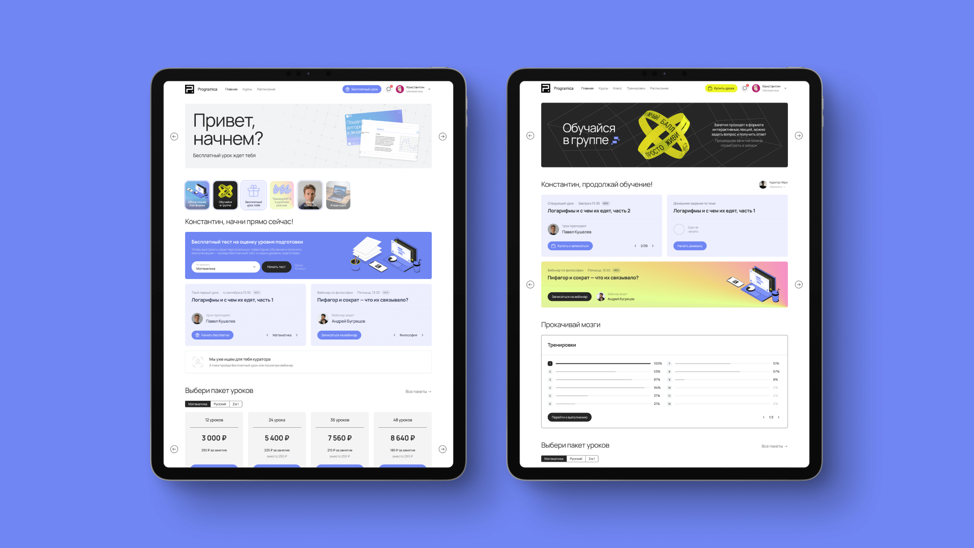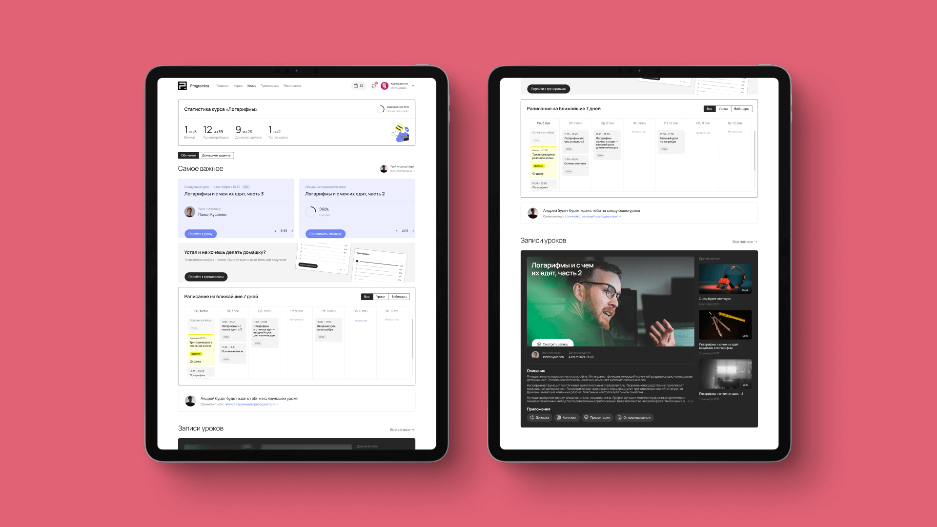 Бренд и стиль школы разработала студия Method Zero by PINKMAN. С оглядкой на айдентику мы разработали дизайн-систему в Фигме и для проектирования интерфейсов личного кабинета использовали ее компоненты. Programica — это сложная и многофункциональная платформа, поэтому основной задачей было спроектировать комфортный опыт для учеников, кураторов и преподавателей.
