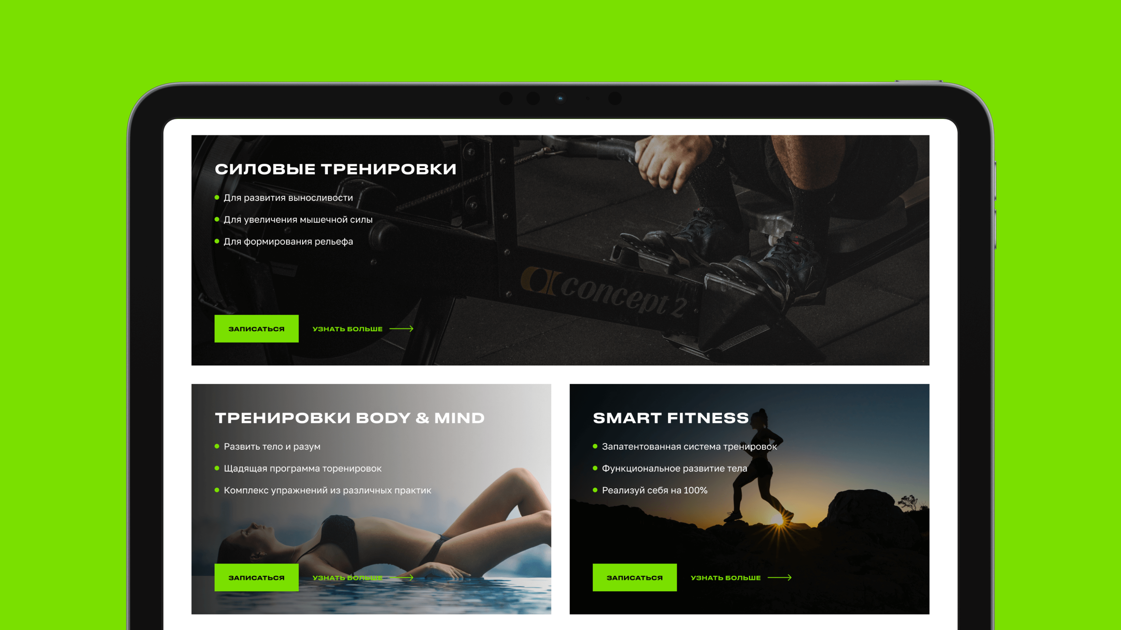 Клиент получил удобный сайт с ярким, привлекательным дизайном, который передает особую атмосферу фитнес-клуба, показывает его высокий уровень оснащенности, лучших тренеров и продуманных тренировок.
