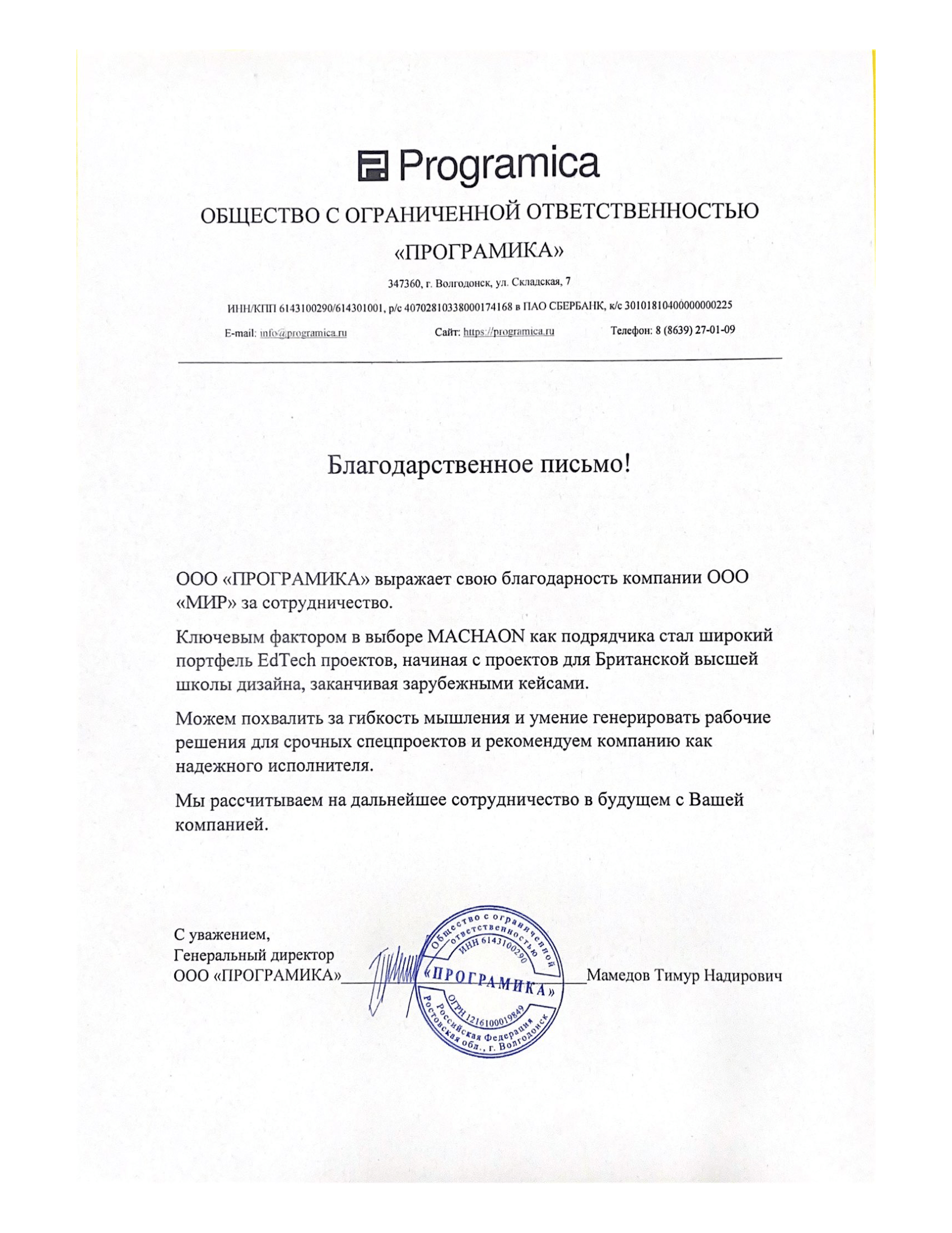 Онлайн-школа Programica для подготовки к ЕГЭМасштабируемая платформа с возможностью создания неограниченного количества курсов, со своей системой видеотрансляций, чатом, домашними заданиями, автоматизированными тренировками, дашбордами с прогрессом обучения.